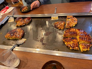 ランチは、みんなで近所のお好み焼き屋さんへ。